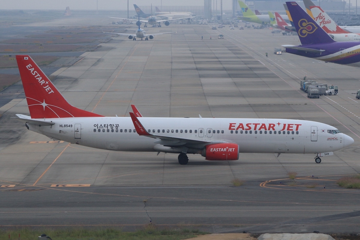 イースター航空611便、ソウル(仁川)から到着、B737-800(HL8549)。