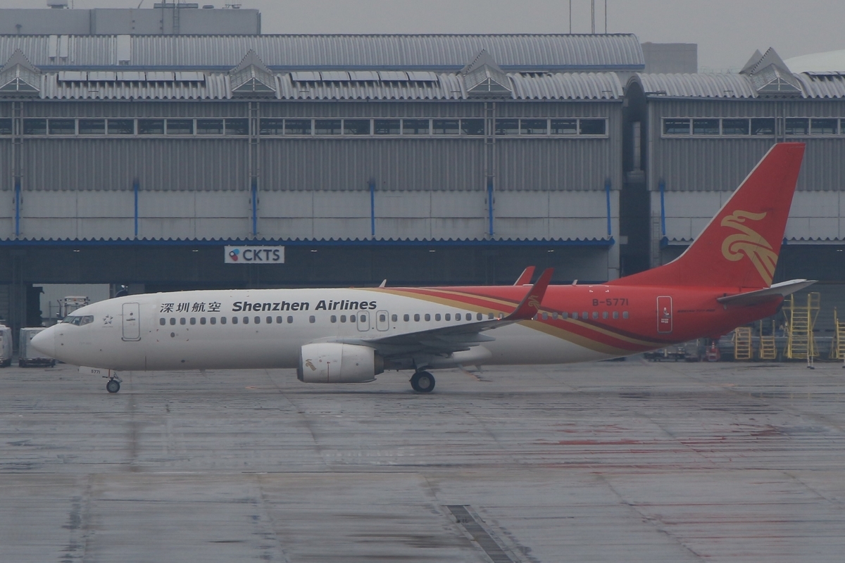 深圳航空673便、無錫から到着、B737-800(B-5771)。