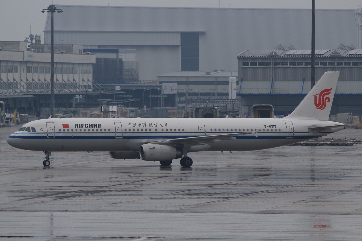 中国国際航空921便、上海(浦東)から到着、A321-200(B-6919)。